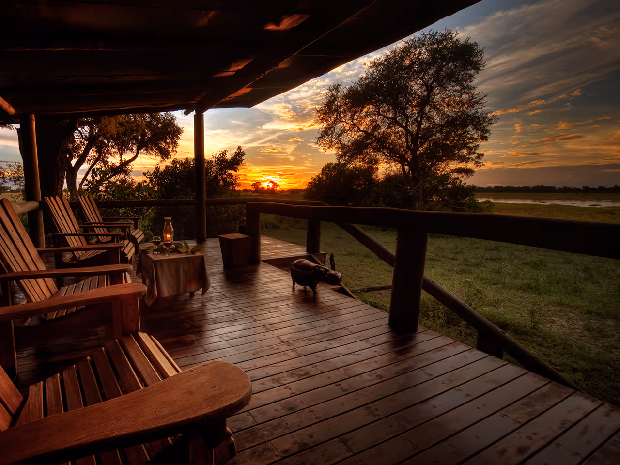 Camp Kwando is a rustic and relaxed riverside lodge with three types of accommodation: camping, island chalets and tree houses. The camp has a shaded swimming pool and a thatched lounge, restaurant and bar that open onto the river.