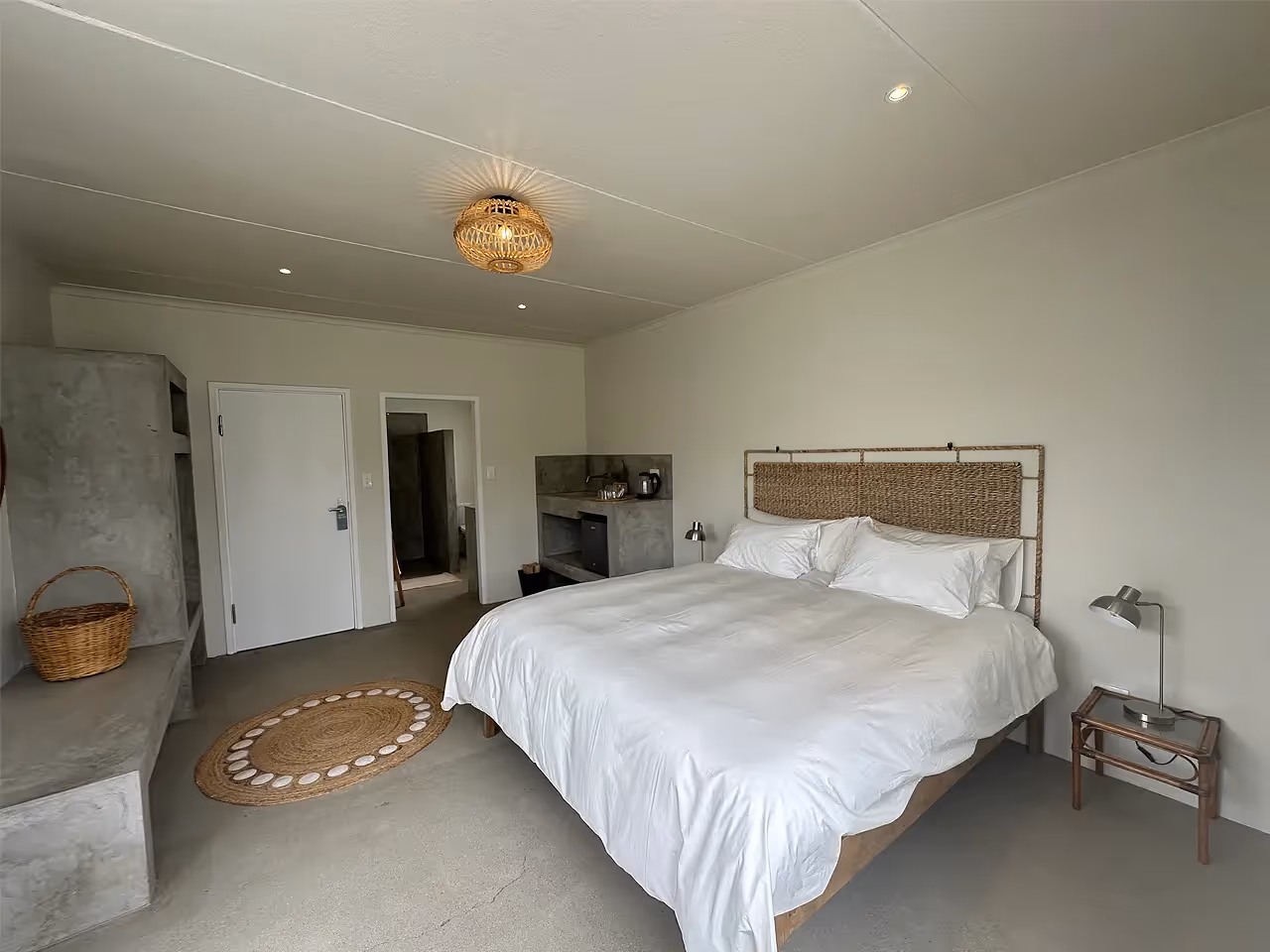 The rooms are elegantly furnished and minimalist in feel, yet all the necessities are covered. Crisp white linens, earthy tones, premium wood and sealed screed finishes round out a modern and sleek aesthetic. All craftsmanship throughout, the work of locals. There’s a story behind each piece and one Charlie would be happy to share with you.