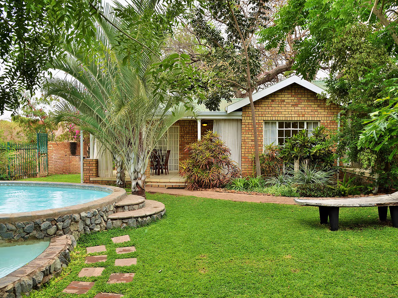 The property is set within well-kept gardens that lead down towards the river. A swimming pool and shaded communal areas provide space to relax between outings, and spa treatments can be arranged. Private braai facilities and outdoor seating encourage sociable evenings under the African sky.