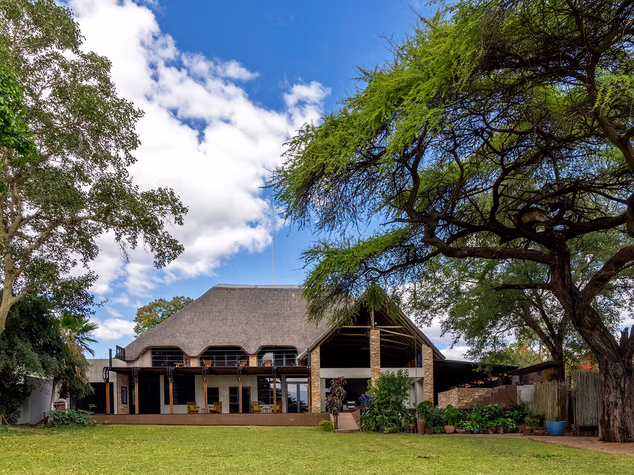 Only minutes from the entrance to Chobe National Park, the lodge combines a tranquil riverfront setting with direct access to Chobe Game Reserve by vehicle or boat. Both land- and water-based safari experiences are available, as well as day trips to nearby Victoria Falls.