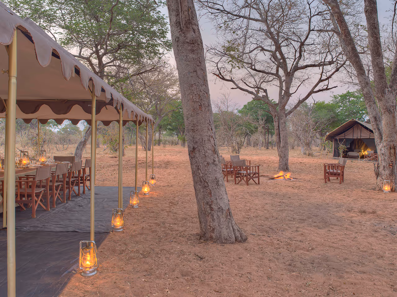 Outside you will find the communal tent for dining, sipping and relaxing with your fellow safari neighbours. All your food will be cooked on an open fire and might we add that it is brilliant when enjoyed around the lanterns and under the night sky. Before dinner, you will even be treated to a sundowner on the edge of the water.