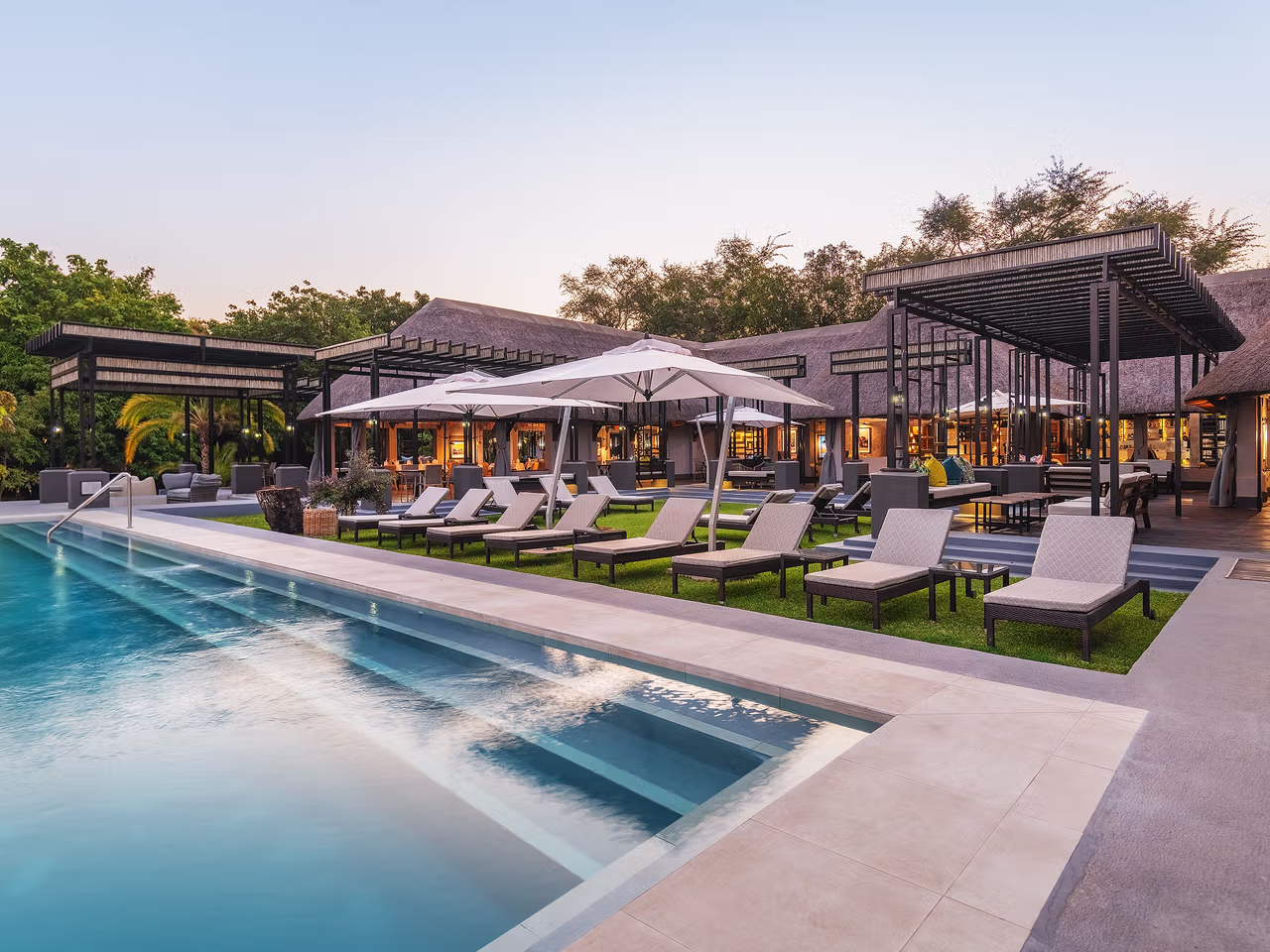 Back at the lodge, unwind beneath the African sky in conversation pits with open fires, enjoy the infinity pool, hit the gym, or settle into a lounger with that bliss-inducing view and a drink in hand.