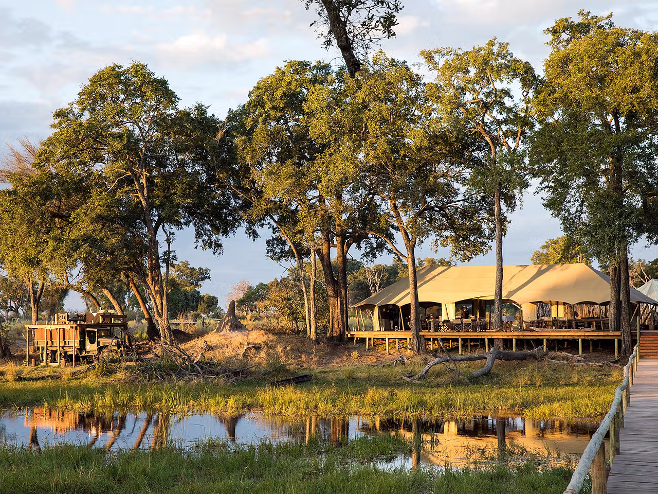 Catch a flight from Maun airport bound for the northeast of the Okavango Delta, as that’s the location of Duba Explorers Camp, one of those remote camps in Botswana that’s accessible only by air. After touching down on a private airstrip, it’s a few minutes’ drive to this island-based camp in the private Duba Concession that extends for an eye-watering 33,000 hectares.