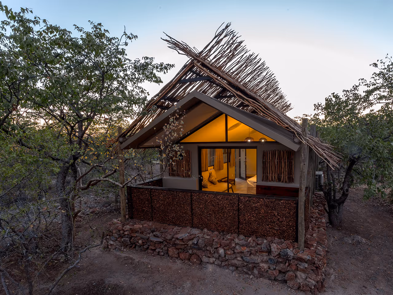 Even before its hard refurb, Etosha Village was probably the best value safari lodge in Etosha. Replacing all tented accommodation with smart air-conditioned chalets, Etosha Village is now by far the best value safari lodge in Etosha.