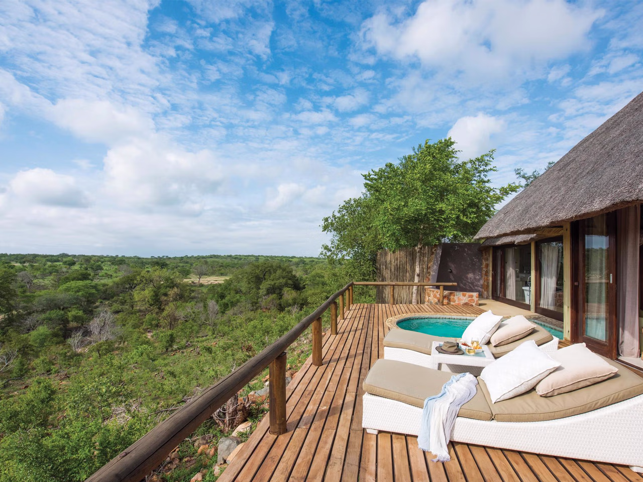Built on a hill overlooking the Sabi Sand Nature Reserve which extends for as far as the eye can see (65,000 hectares to be precise), the reserve occupies a significant area of the southwest of Kruger National Park. And with no fences between Sabi Sand and Kruger, wildlife is free to roam, increasing the chances of them paying a visit to the natural waterhole and plains you can see with panoramic ease from your suite.