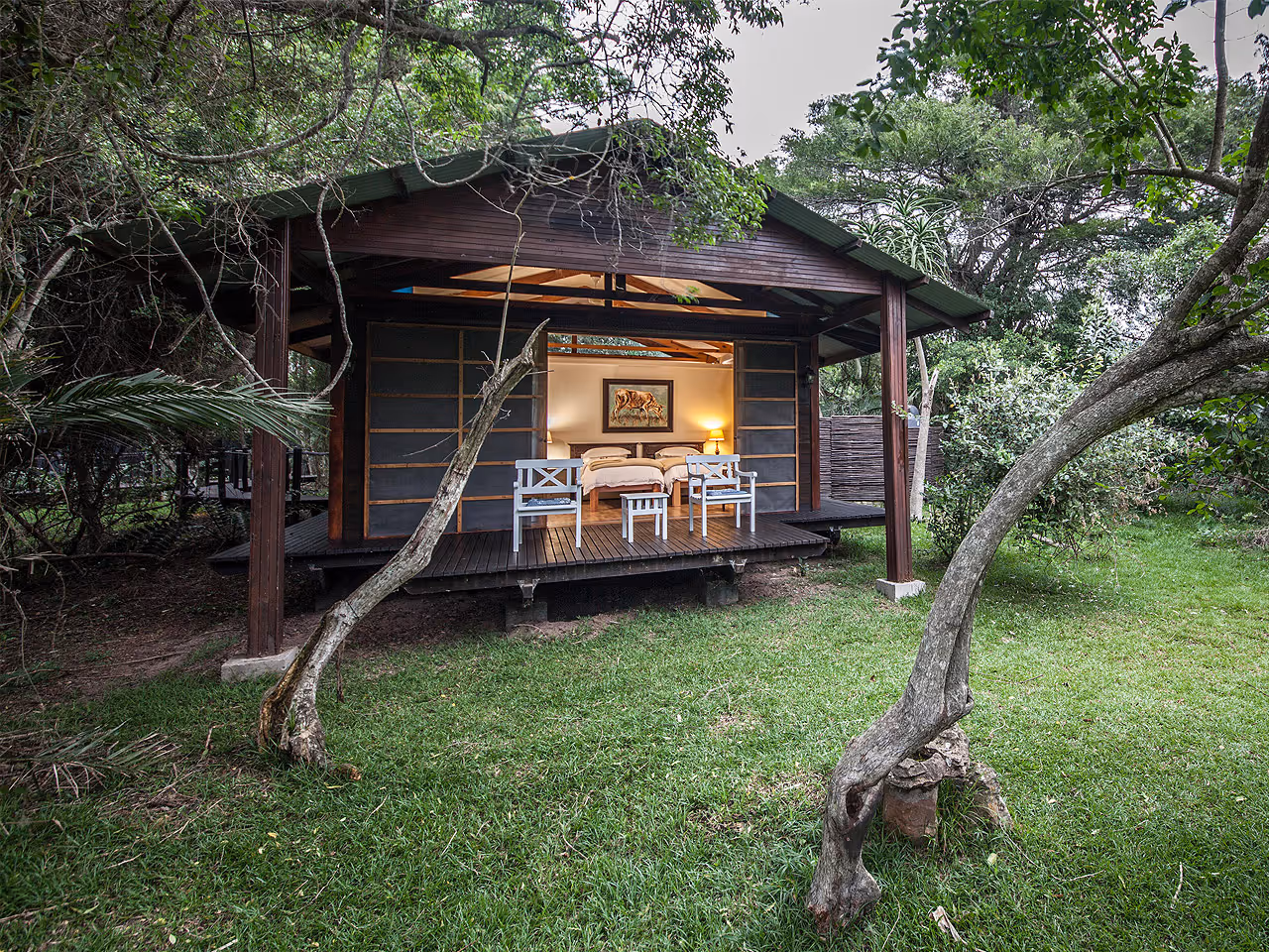 Makakatana Bay Lodge is in the iSimangaliso Wetland Park World Heritage Site on the banks of Lake St Lucia. Accommodation options include 5 standard rooms, 2 family rooms and 1 honeymoon suite.
