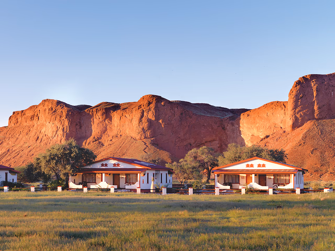 The main lodge is a charming stone and thatch construction built around two large pools and your source of shade, a cool breeze and an iced drink. Inside there is a cosy lounge for those cool desert winter evenings as well as the restaurant and bar. Warm evenings will see you out on the terrace beneath a roof of stars so thick it will look fake.