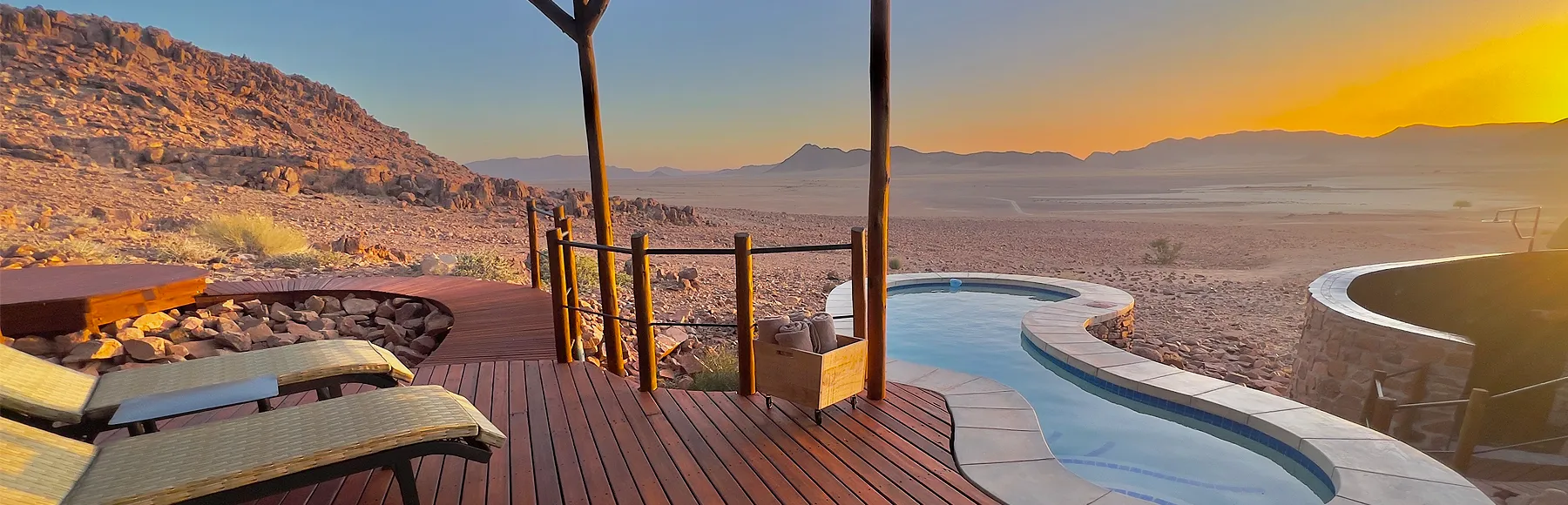 Namib Outpost, once Desert Homestead Outpost, is an upmarket, upscale, up-everything version of the Desert Homestead Lodge in the Namib Desert 30km from the entrance to Sossusvlei.