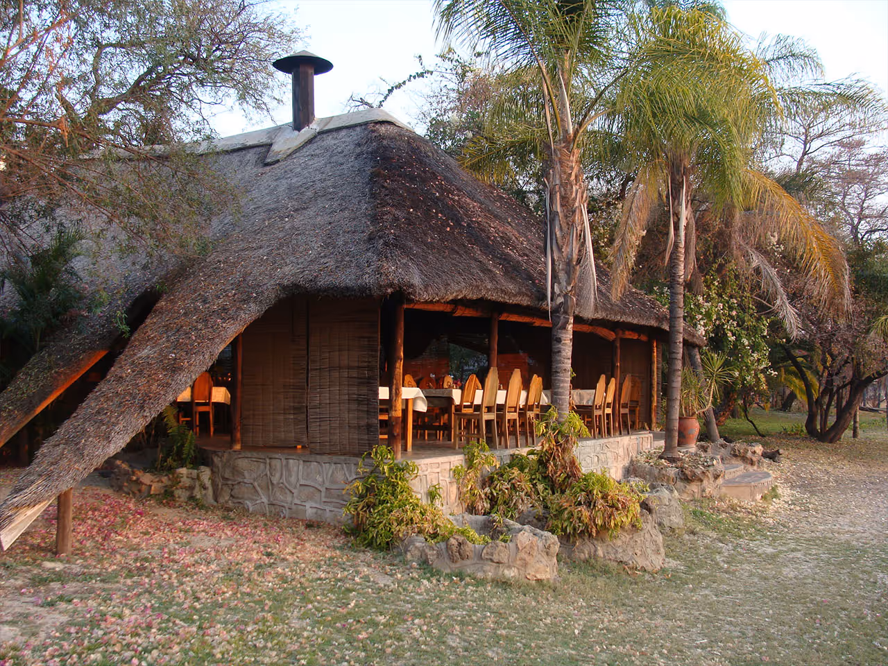 Owners, Valerie and Wynand are as welcoming as the Irish, as enthusiastic as the Dutch and as resourceful as the Africans. Their 14 home-made chalets overlook the Kavango River just east of Rundu and they are comfortable, private and cool. The living area features a lively bar and campfire, a hearty restaurant, a swimming pool lined with loungers, and a large thatched gazebo that soaks up all the attention.