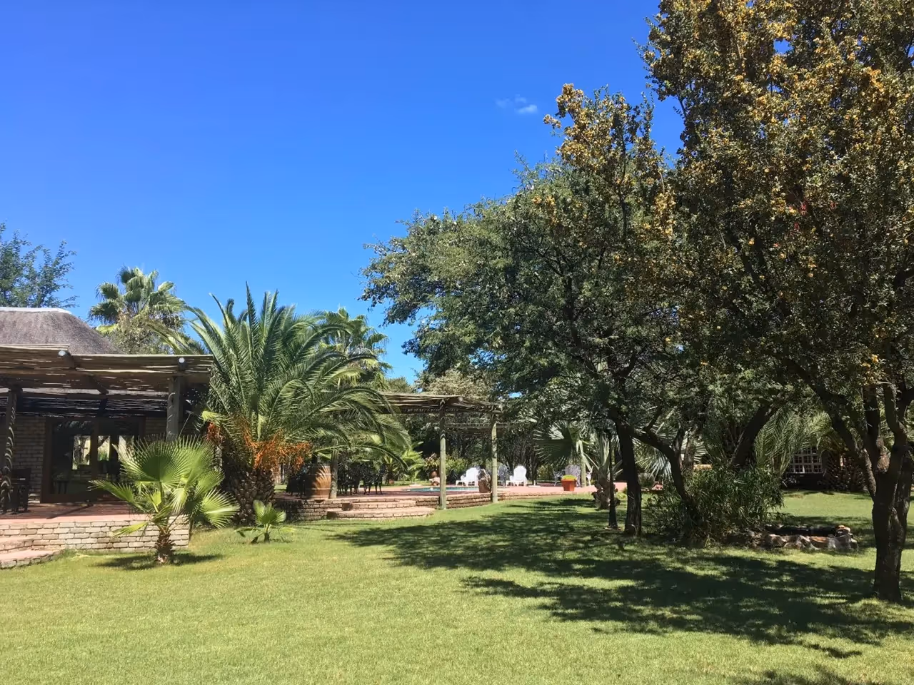 Palm Afrique is a welcoming safari-style lodge in the heart of the Kalahari with a relaxed atmosphere, cold drinks, delicious meals and genuine hospitality.