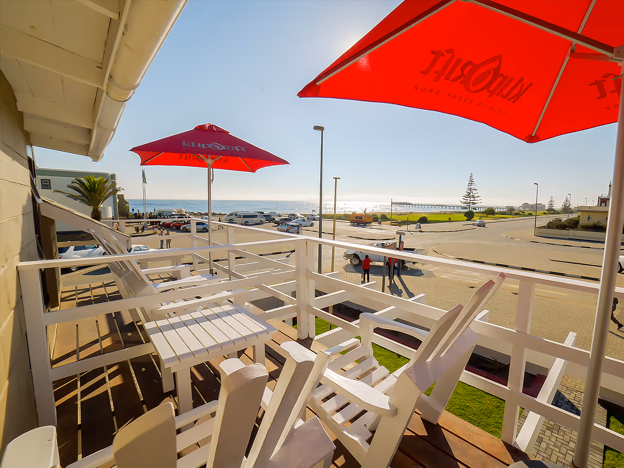 The sea is right across the road and you're a stone's throw from The Tug Restaurant and The Jetty. The former a Swakopmund institution, the latter fast becoming one. The Beach Bar - truth is, it's got so many nicknames we never know what to call it - is yet another Swakopmund institution although with an altogether different style from the Jetty: with beach-sand flooring, fishing-net roofing and palm-frond walls this place takes its rustique quite seriously.