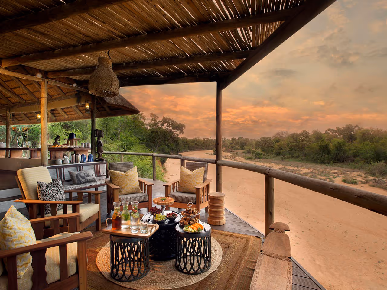 Tandu Tula Safari Camp has 12 en suite rooms constructed on concrete plinths dotted along the ephemeral Nhlaraluni River. With a thatch hangar, the inner sanctum is a tented suite with a large front deck and a sprawling en suite bathroom that steps out into the open air.