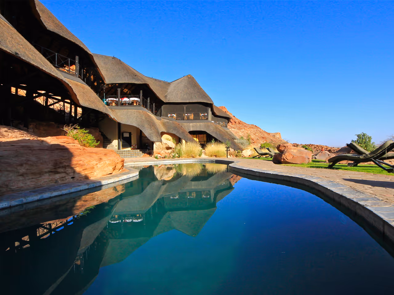 Damaraland is a region of ancient oddities and Twyfelfontein Country Lodge is slap bang in the middle. Its cool interior, camouflage exterior and all-important swimming pool turn this humble lodge into a veritable oasis.
