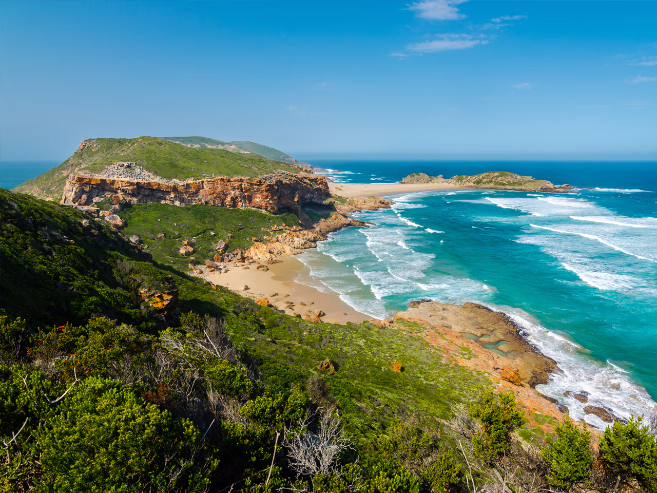 Popular with visitors and South Africans who migrate to its golden beaches during the school holidays, it makes for the perfect beach stop on your road trip. With an endless amount of outdoor activities, you can easily get lost here for a week or longer, but even a couple of days will allow you to capture Plett’s essence: a place where you can hike ancient coastal trails, swim in sheltered bays, sip wine among the vines, and round off each day with world-class food and cocktails overlooking the Indian Ocean.