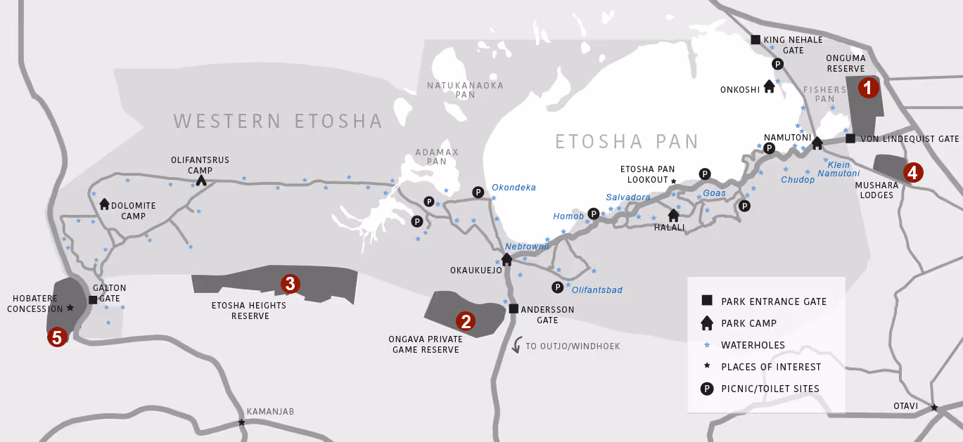 With an additional 16 tried-and-tested private Etosha lodges listed on our website just outside of the Etosha National Park we’re sure to find the perfect match for your budget and preferences – chat to us to find out which one suits you best, to get you started on your Etosha adventure.