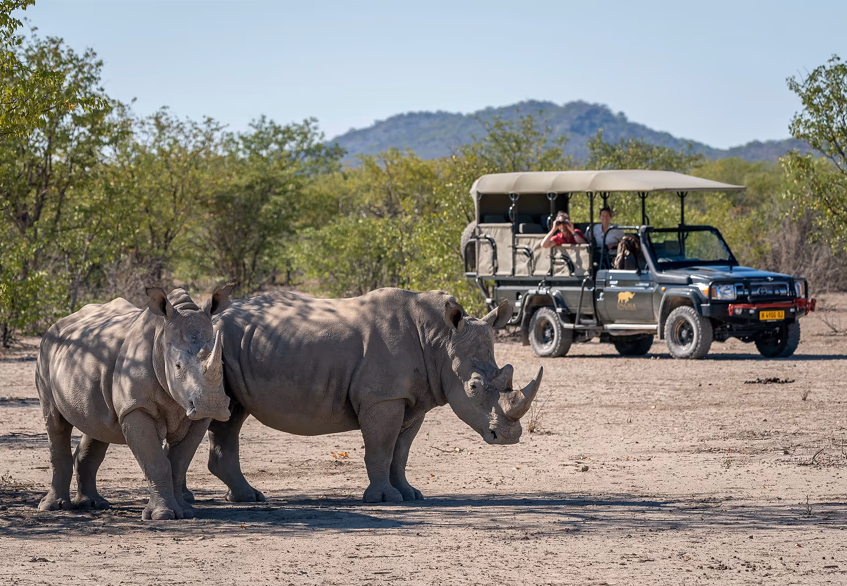 One of the largest private reserves in Namibia, Etosha Heights shares a 65-kilometre boundary with Etosha National Park, and offers 60,000 hectares of unspoiled wildlife on its southwest border. Etosha Heights is about 1,5 hours from the closest entry gate to Etosha Park so it makes more sense to enjoy most of your game viewing in this private reserve instead of venturing into the park. It is known for its healthy population of both black and white rhino. Choose from three lodges and camps: the elevated Etosha Mountain Lodge with nine classic Namibian chalets, Safarihoek Lodge, which offers great views from the hill position of its 11 chalets, or the exclusive-use three-bedroom Safari House. Etosha Heights also boasts a two-level hide which allows guests to get incredible shots without intruding on the wildlife at all.