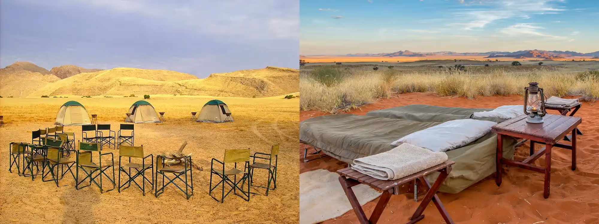 If you’re self-driving through Namibia, a 4x4 with a roof tent is a great option, as the elevated location of your sleeping area brings the added element of safety you won’t get from pitching on the ground.