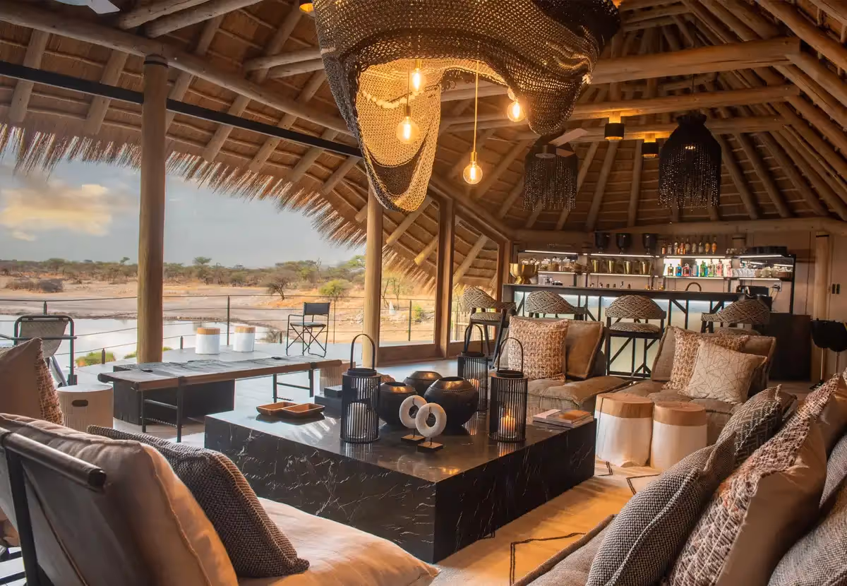 Featuring stunning views of the floodlit waterhole from every vantage point - whether you're relaxing on your private deck, enjoying the plunge pool or wood-fired hot tub, snuggled in bed, or sipping cocktails at the bar or yoga deck. The main area, resembling a termite mound, includes an open-plan kitchen where you can enjoy communal meals or opt for a private dinner in your suite. Ideal for small groups, the entire camp can also be booked for an exclusive experience.